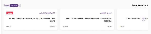 ووفقًا لجدول البث الخاص بالشبكة غدًا الجمعة، والذي تم الكشف عنه، فمن المقرر أن تذاع مباراة السوبر الإفريقي، عبر قناة beIN Sports HD 4.