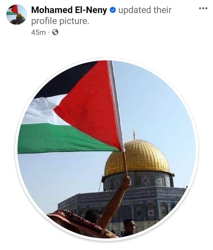 وقام محمد النني بوضع صورة البروفايل الخاص به للمسجد الأقصى وعلم فلسطين في إشارة إلى دعمه الكامل للبلد العربي الشقيق.