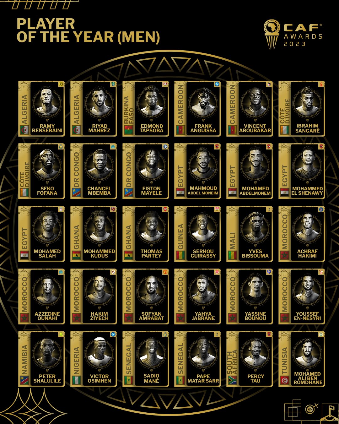 كشف الاتحاد الإفريقي لكرة القدم "كاف"، قائمة المرشحين لجائزة أفضل لاعب في إفريقيا 2023، ضمن حفل جوائز "كاف" الذي يقام سنويًا.