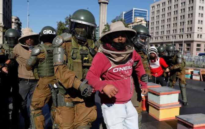 وطالب المحتجون لقاء الرئيس سيباستيان بينيرا، لمنحهم إعانات بسبب موت مجموعات النحل نتيجة الجفاف، ما أثر على إنتاج العسل، والذي يعد عملهم الأساسي.