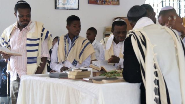 بينما يقرأ مقتطفات من التوراة، ويرتفع صوته وينخفض وهو يقرأ الأسفار العبرية، وانضم إليه عشرات من الأشخاص يرددون وراءه، وغالبيتهم لا يتقنون اللغة، ولكن أفراد هذا المجتمع النيجيري الصغير يزعمون أن لهم أصولًا يهودية تعود لمئات السنين، ويشعرون بخيبة أمل لعدم اعتراف إسرائيل بهم.