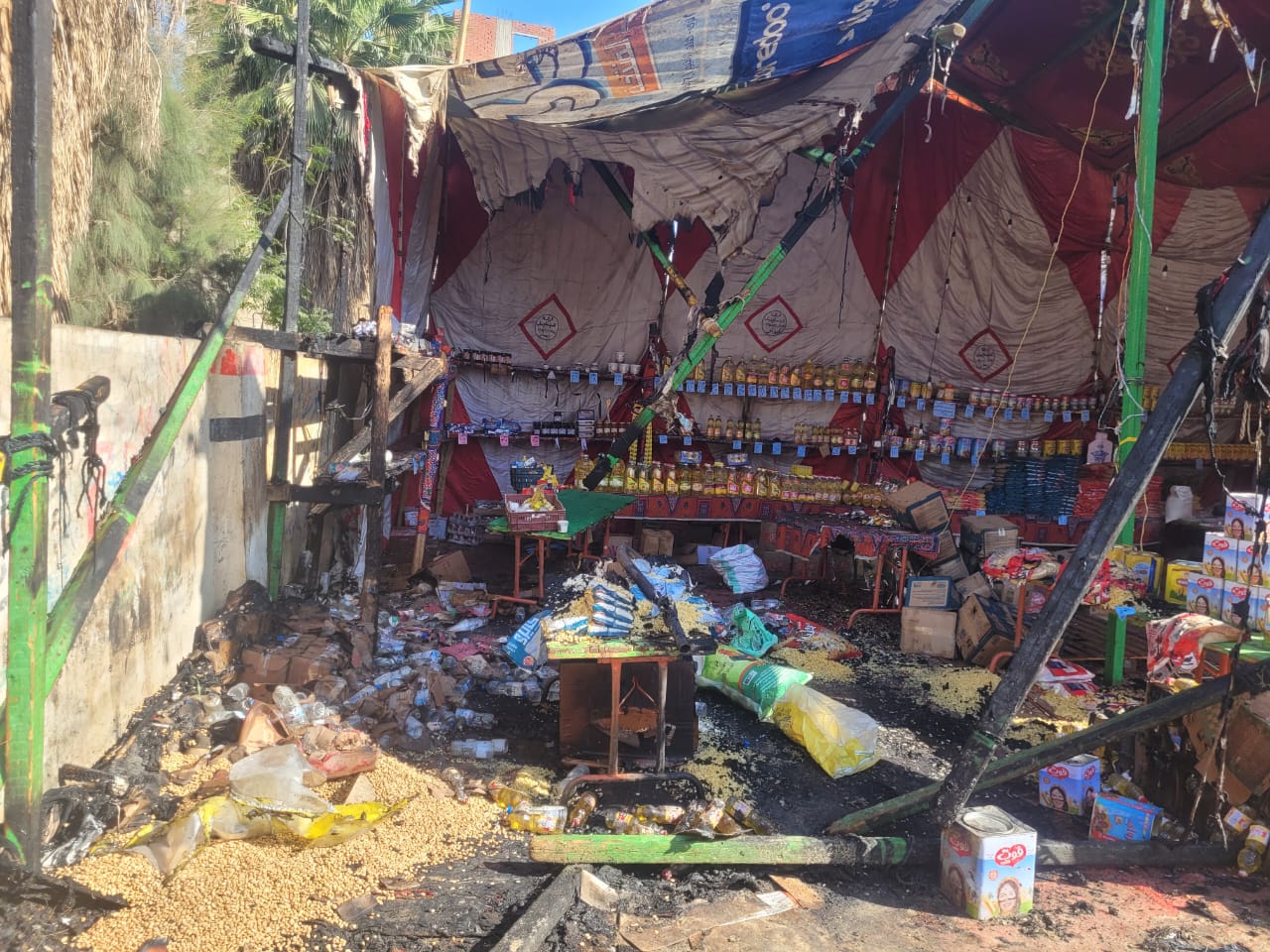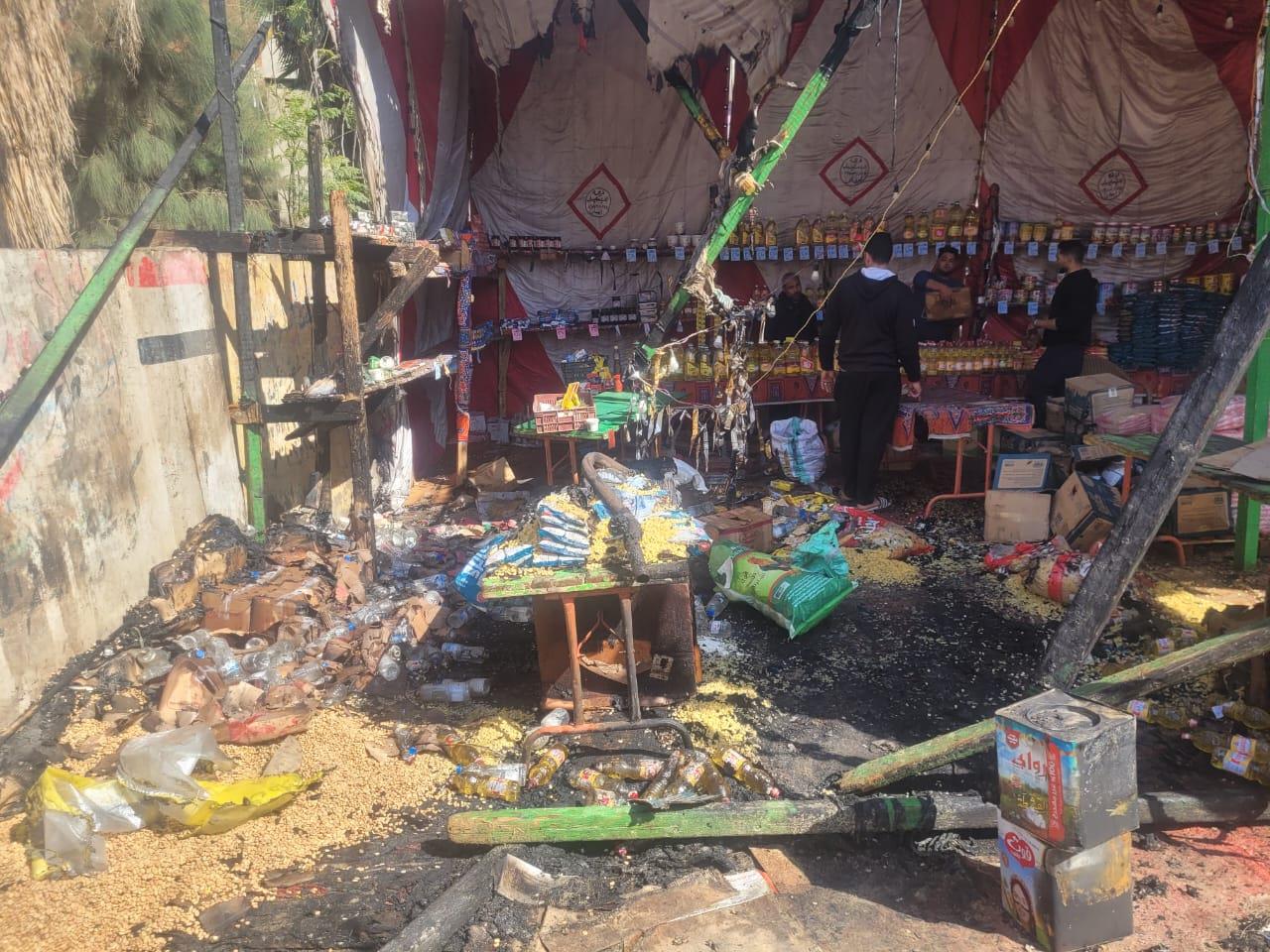 وتمكن رجال الحماية المدنية في السيطرة على الحريق الذي التهم خيمة معروضات رمضان واحتراق العديد من السلع الغذائية الاستهلاكية التي كان يتم عرضها للجمهور داخل المعرض والمعلبات وبعض من الأخشاب دون وقوع إصابات بشرية وتم منع امتداد النيران إلى المناطق والمنازل المجاورة للمعرض والسيطرة على الحريق، وبالمعاينة تبين امتداد النيران إلى معرض السلع الاستهلاكية بقرية إبيار بعد احتراق بعض من أشجار النخيل المجاورة له .