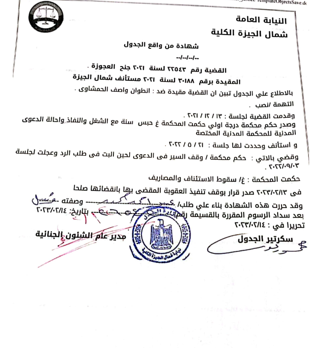 كانت محكمة شمال الجيزة، قضت في أكتوبر 2022، بحبس رجل الأعمال اللبناني أنطوان واصف الحمشاوي، لمدة عام، بتهمة الاستيلاء على 43 مليون و800 ألف جنيه خلال عملية بيع شركة وهمية.