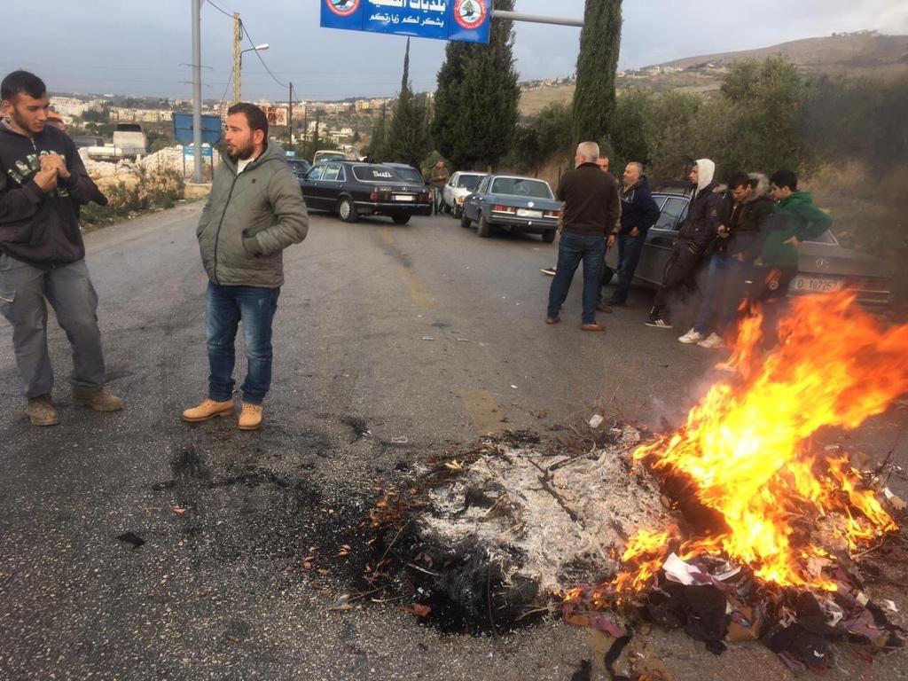 وقام المحتجون بإغلاق الطرق بصناديق القمامة وإشعال النيران في إطارات من الكاوتش، وأقفل سائقو السيارات العمومية والباصات والشاحنات والميني باص منذ فجر اليوم طريق طرابلس، ومن المقرراستمرار الاحتجاجات حتى الخامسة مساًء.