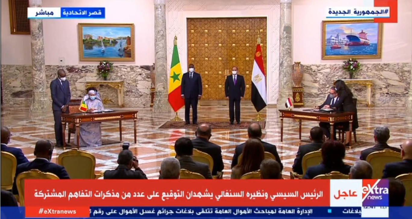 شهد الرئيس عبد الفتاح السيسي، برفقة نظيره السنغالي، توقيع مذكرة تفاهم للتعاون في مجال الآثار بين المجلس الأعلى للآثار بجمهورية مصر العربية ومتحف الحضارات الإفريقية التابع لوزارة الثقافة بجمهورية السنغال.