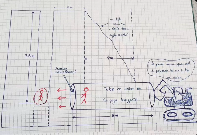 التقنية ستمكن رجال الإنقاذ من الحفر اليدوي لمسافة 8 أمتار مع دفع 4 أنابيب كبيرة مكان المنطقة المحفورة بعد إزالة التربة، والهدف من هذه التقنية هو حماية رجال الإنقاذ أثناء التقدم في الحفر من أي انجراف للتربة "glissement" أو انهيار "Effondrement" وأيضًا سلك طريق آمن في عملية الإنقاذ.