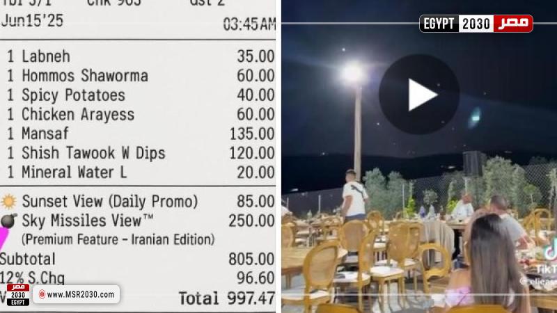 حيث قام المطعم اللبناني بفرض رسومًا إضافية مقابل الجلوس على طاولة تطل على عبور الصواريخ الإيرانية تجاه إسرائيل،