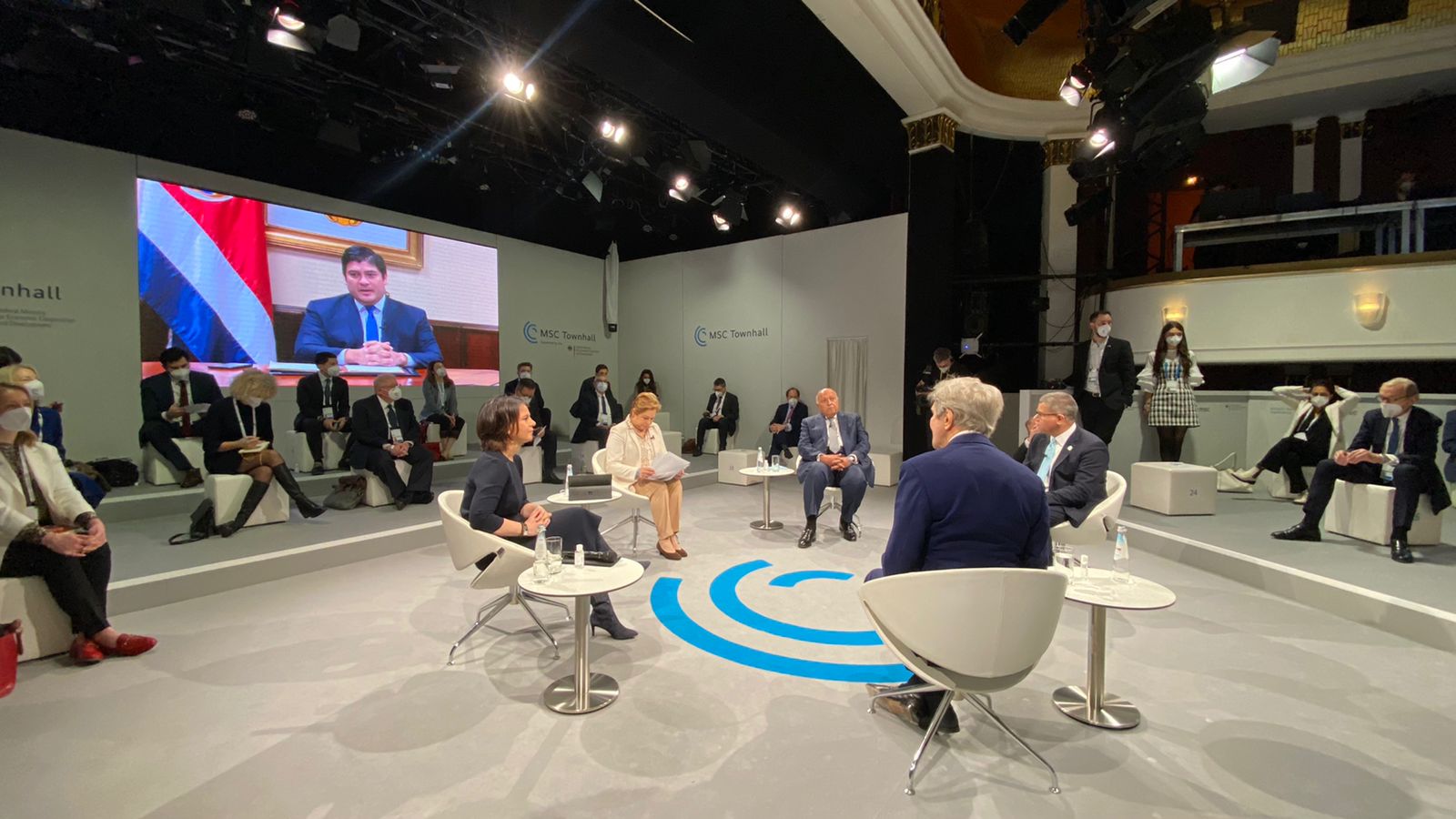 شارك وزير الخارجية، سامح شكري، الرئيس المُعين للدورة الـ27 لمؤتمر أطراف اتفاقية الأمم المتحدة الإطارية لتغير المناخ COP27، اليوم 19 فبراير 2022، في جلسة حول الدبلوماسية البيئية وتغير المُناخ، في إطار مشاركته الحالية في فعاليات مؤتمر ميونخ للأمن.