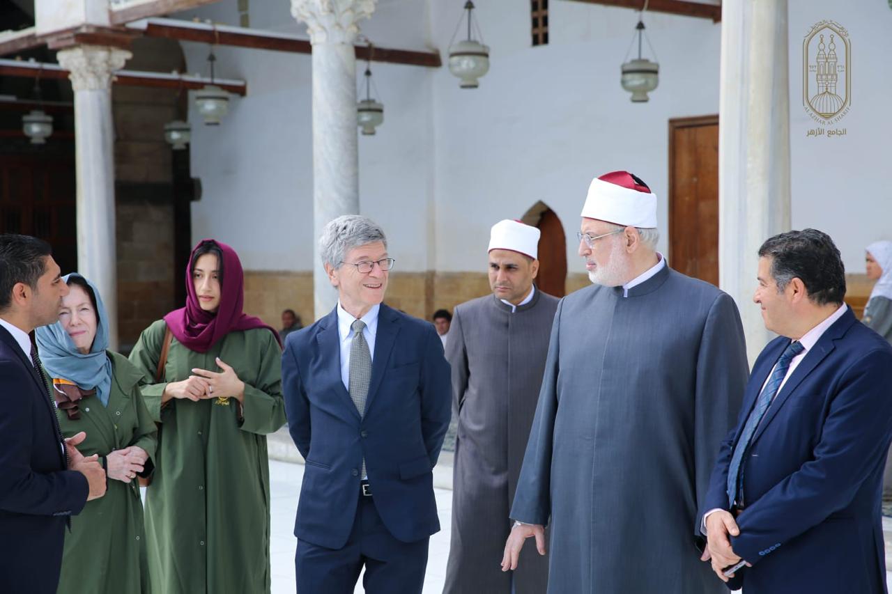 جمال الفن الإسلامي وقيم الوسطية.. البروفيسور جيفري ساكس يزور الجامع الأزهر