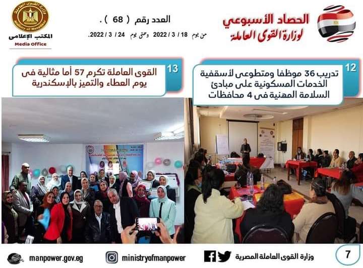 شهد حصاد الأسبوع الحالي، في وزارة القوى العاملة العديد من الأحداث المهمة خلال الفترة من 18 إلى 24 مارس الجاري.