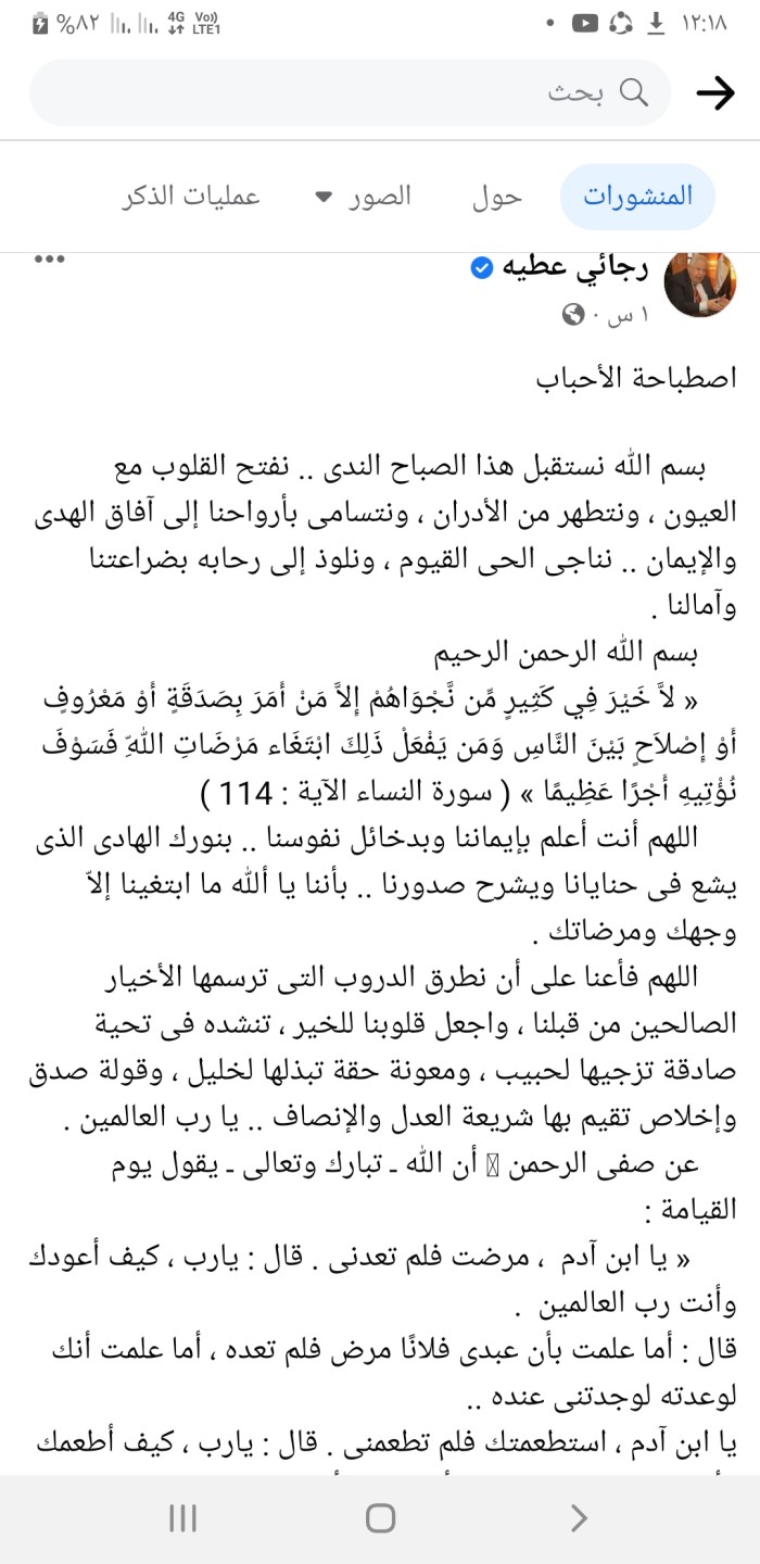 ننشر آخر بوست على صفحة نقيب المحامين رجائي عطية على «فيس بوك» قبل وفاته صباح اليوم بنصف ساعة.