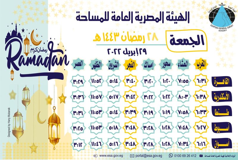 28 رمضان.. مواقيت الصلاة في محافظات ومدن الجمهورية الجمعة 29/4/2022