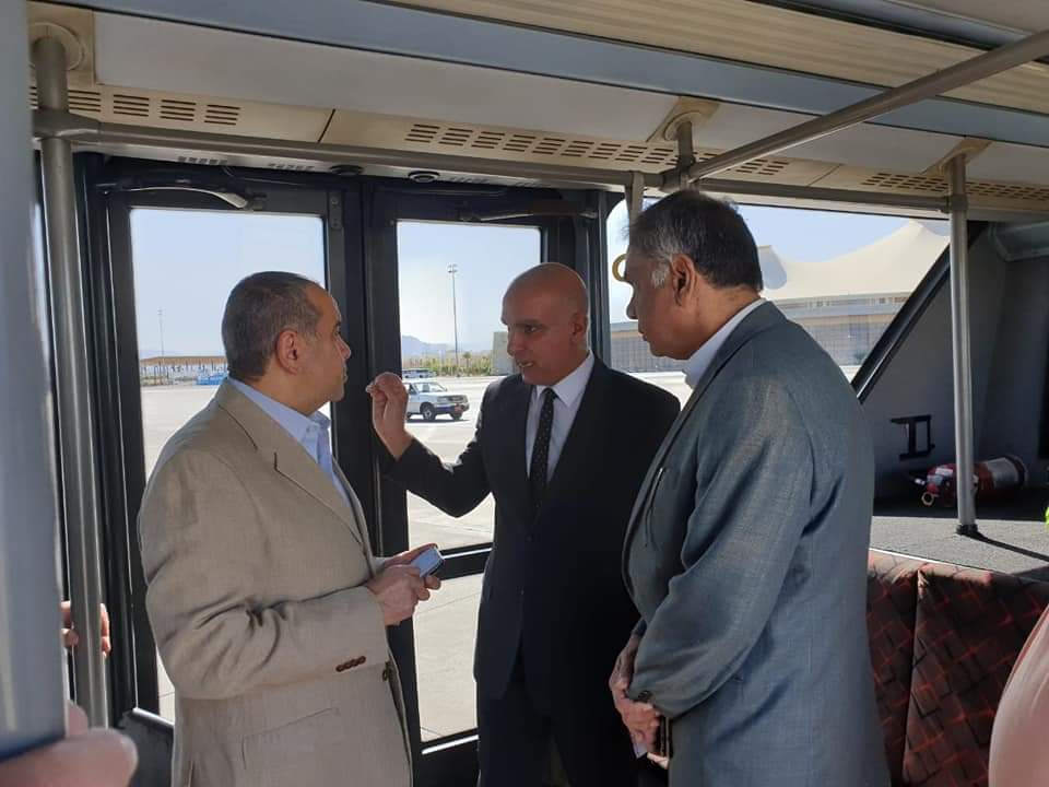 رافق الوزير فى الجولة باسم عبد الكريم مساعد وزير الطيران للعلاقات الدولية والإعلام وكان فى استقبالهما اللواء نبيل الملاح مدير مطار شرم الشيخ.