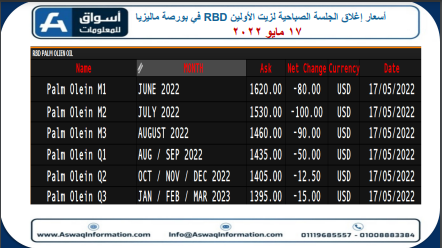 انخفضت عقود زيت الأولين الماليزي بشكل كبير، اليوم الثلاثاء 17 مايو، عند إغلاق الجلسة الصباحية في بورصة ماليزيا.
