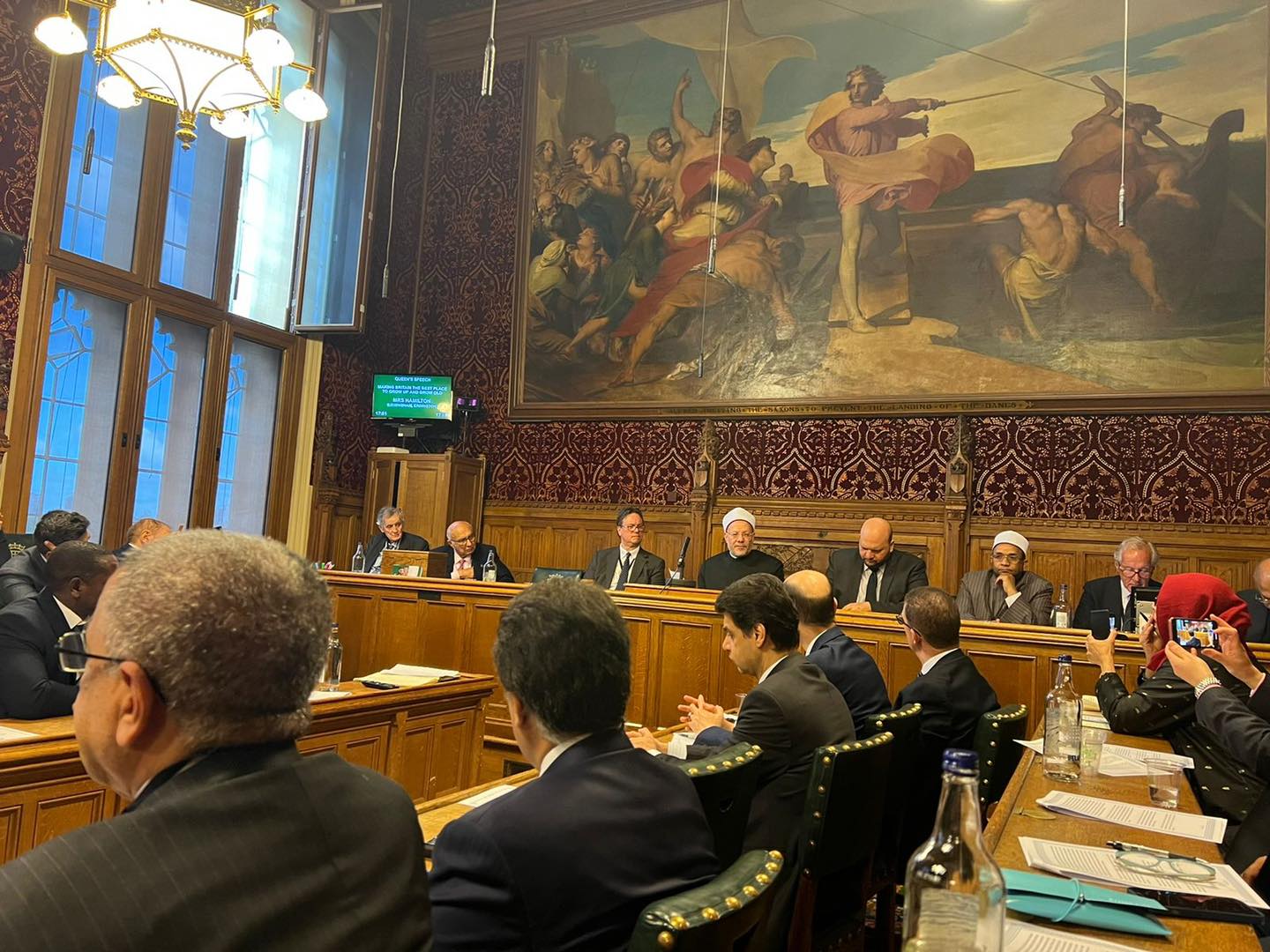 وعبر المفتي عن انطباعه عند دخوله مجلس النواب البريطاني قائلًا: "عندما دخلت من الباب الرئيسي لمجلس النواب البريطاني شعرت بالتاريخ يتحرك من أمامي وهو تاريخ طويل من العطاء".
