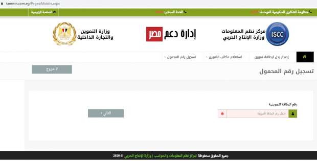خطوات تسجيل بطاقة التموين برقم الموبايل